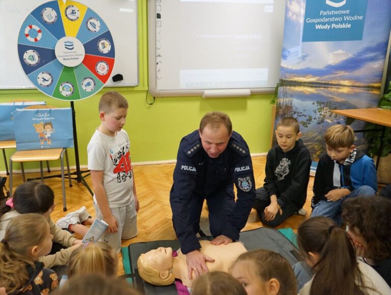 Policjanci z przeworskiej komendy wraz z przedstawicielami Państwowego Gospodarstwa Wodnego Wody Polskie Regionalnego Zarządu Gospodarki Wodnej w Rzeszowie spotkali się z dziećmi ze Szkoły Podstawowej w Krzeczowicach. Spotkanie odbyło się w ramach programu „Aktywni Błękitni – Szkoła Przyjazna Wodzie”. Podczas