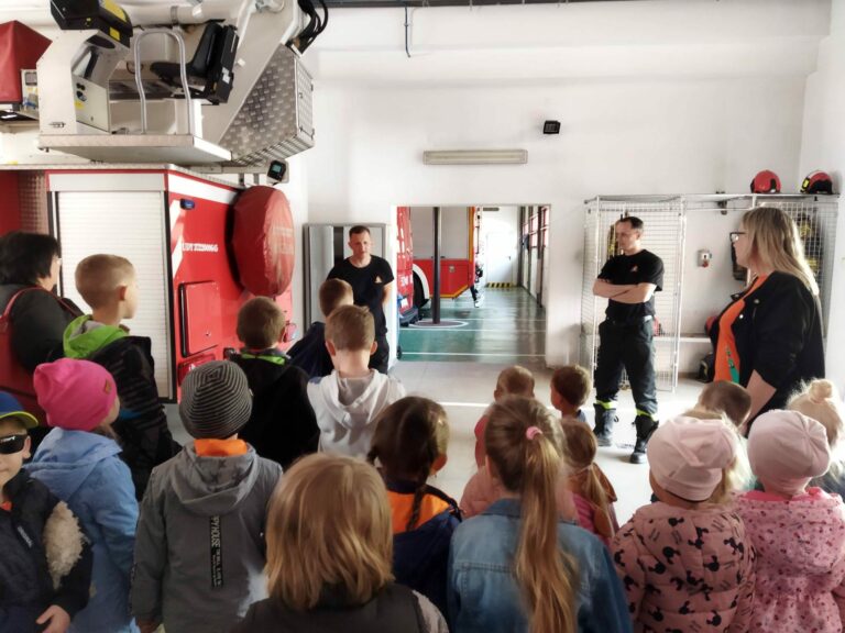 Przedszkolaki oraz uczniowie klas 0-III w dniu dzisiejszym odwiedzili Komendę Powiatowej Straży Pożarnej w Przeworsku. Dzieci miały okazję zobaczyć wozy strażackie, sprzęt ratowniczy, przymierzyć stroje używane w akcjach i zobaczyć samochód strażacki od środka. Dzieci wysłuchały opowieści o trudnej, odpowiedzialnej