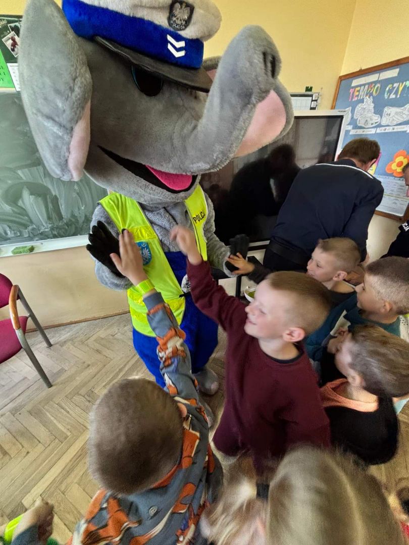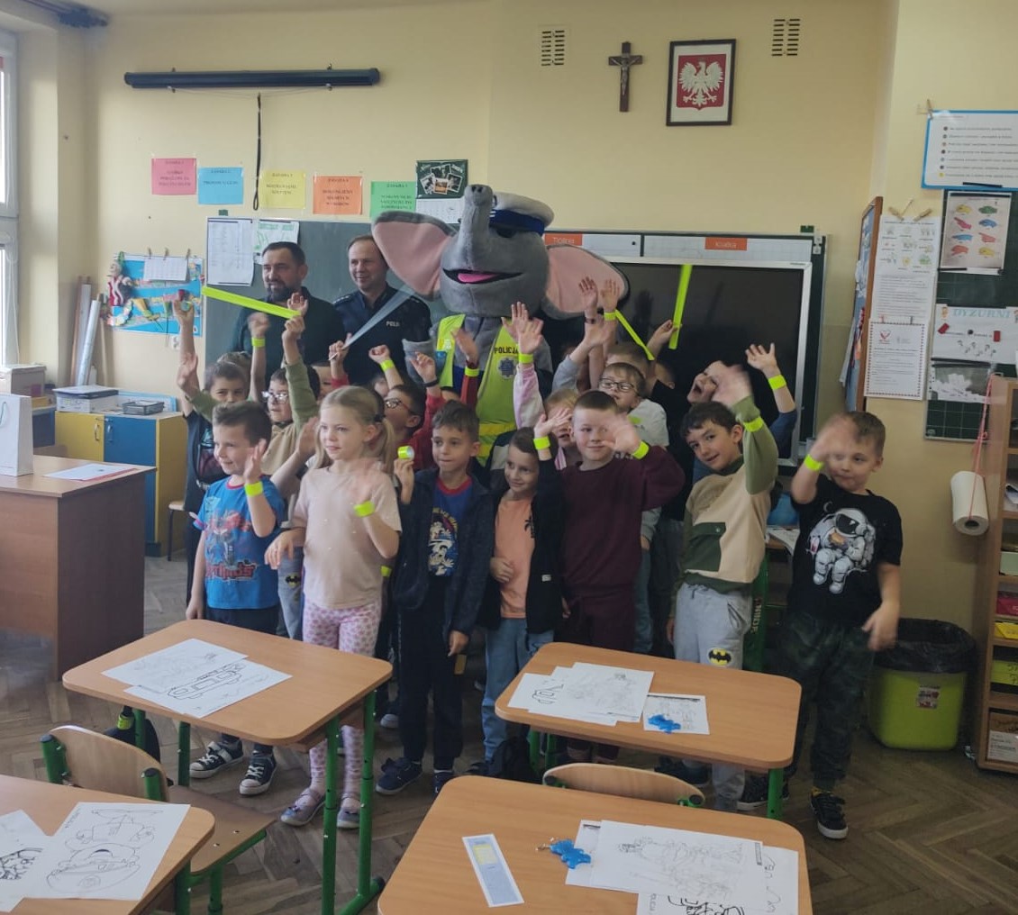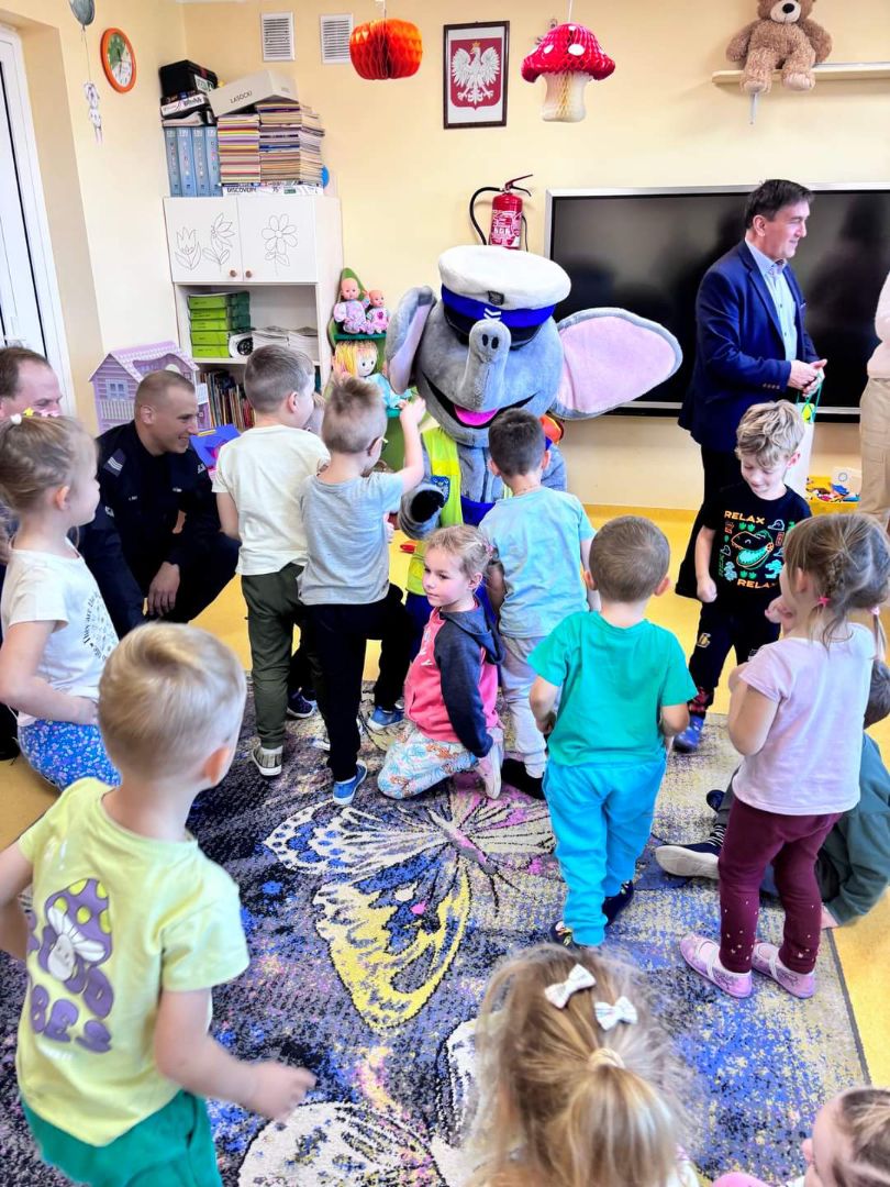 Na zakończenie spotkania dzieci otrzymały elementy odblaskowe od policyjnej maskotki sierż. „Policeusza”.