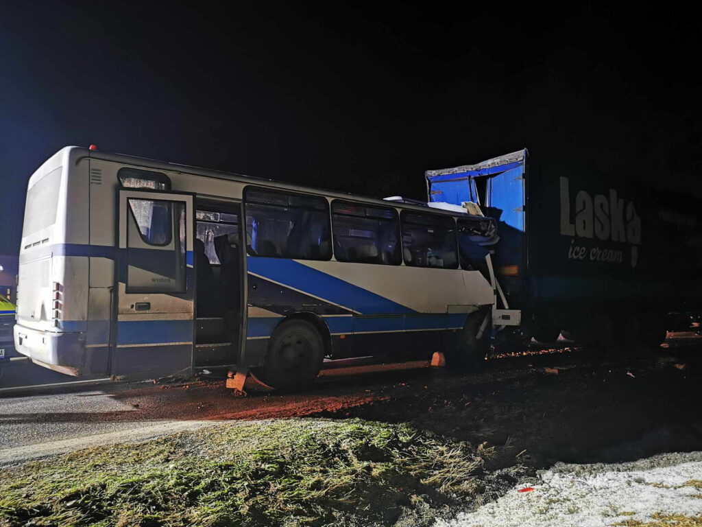 Autobus wjechał w stojącego TIR’a
