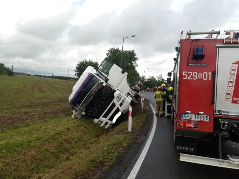 30 sierpnia samochód ciężarowy wypadł z jezdni na łuku Drogi Krajowej 77 w Tryńczy. Brak osób poszkodowanych – relacjonuje Komenda Powiatowa Państwowej Straży Pożarnej w Przeworsku Fot: st. sekc. Roman Niemiec