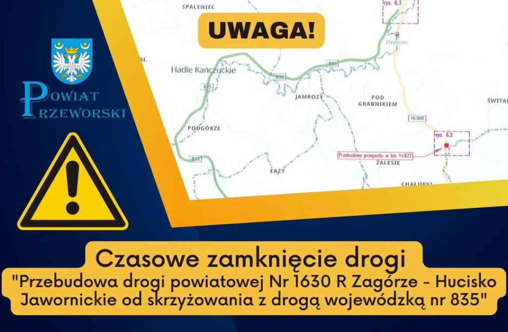Wykonawca robót firma Strabag Sp. z o.o. informuje o zamknięciu drogi powiatowej Zagórze – Hucisko Jawornickie na czas prowadzonych prac nawierzchniowych.