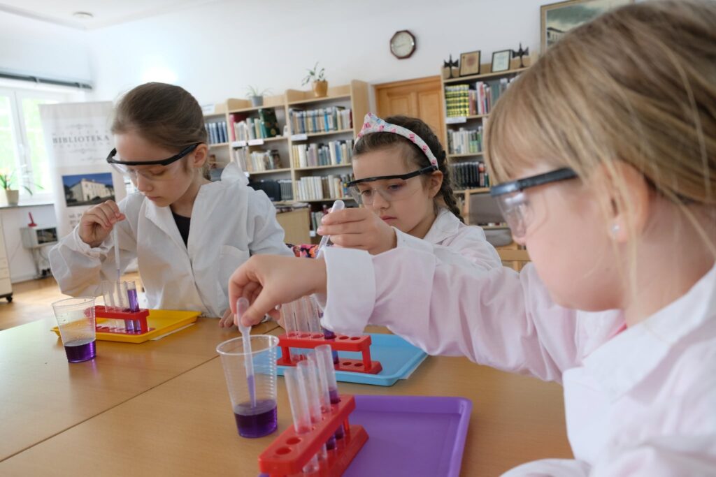 Najwięcej emocji wzbudził jednak moment, w którym dzieci mogły samodzielnie – pod czujnym okiem prowadzącej – przeprowadzić własne doświadczenia. Uczestnicy z entuzjazmem mieszali składniki, obserwowali zmiany kolorów i konsystencji substancji, a przede wszystkim uczyli się poprzez zabawę.