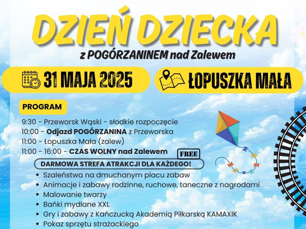 Przeworska Kolejka Wąskotorowa (PKW) przygotowała wyjątkową propozycję na tegoroczny Dzień Dziecka! Już w sobotę, 31 maja 2025 roku, odbędzie się rodzinny dzień pełen uśmiechów, przygód i niezapomnianych atrakcji, którego głównym celem będzie Zalew w Łopuszce Małej.