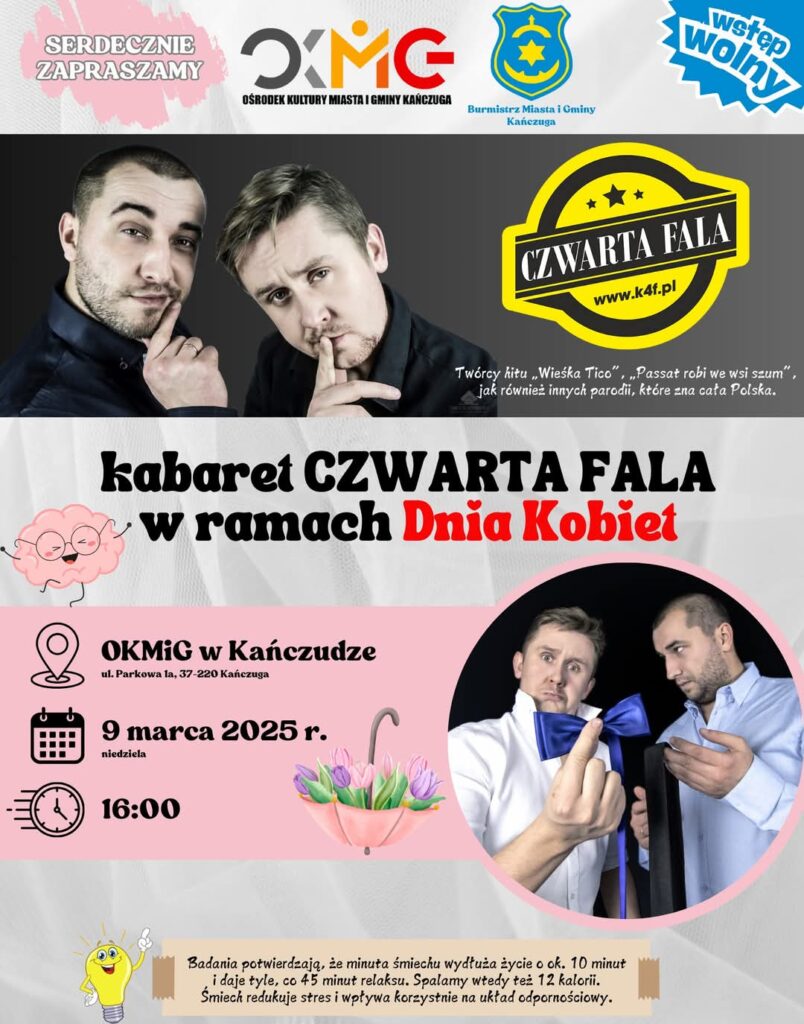 Urząd Miasta i Gminy w Kańczudze zaprasza na niezapomniany wieczór pełen śmiechu i dobrej zabawy z Kabaret Czwarta Fala!