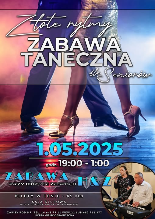 Miejski Ośrodek Kultury w Przeworsku serdecznie zaprasza wszystkich seniorów oraz osoby młode duchem na wyjątkowy wieczór taneczny „Złote Rytmy”, który odbędzie się w czwartek, 1 maja 2025 roku, w sali klubowej MOK.