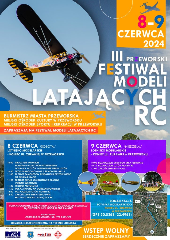 Drodzy miłośnicy lotnictwa i pasjonaci modeli RC! Już wkrótce odbędzie się wyjątkowe wydarzenie, na które serdecznie zapraszają Leszek Kisiel Burmistrz Miasta Przeworska, Miejski Ośrodek Kultury Przeworsk, MOSiR Przeworsk oraz Aeroklub Rzeszowski. Przygotowaliśmy mnóstwo atrakcji, które dostarczą niezapomnianych wrażeń zarówno dużym, jak i małym entuzjastom podniebnych przygód.