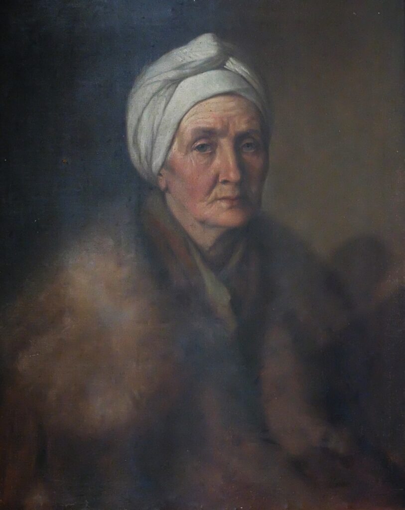 STARSZA KOBIETA o szlachetnych rysach twarzy, W STYLOWYM TURBANIE I ETOLI z sobola – namalowana została w 1856 r. (?) Sygnatura malarza jest słabo czytelna, może to lwowski malarz, portrecista i kopista Jędrzej Bronisław Grabowski?… Nie wiadomo też, kim jest ta starsza dama na portrecie; w pierwszym inwentarzu opisana została przez Józefa Benbenka jako „mieszczka”.