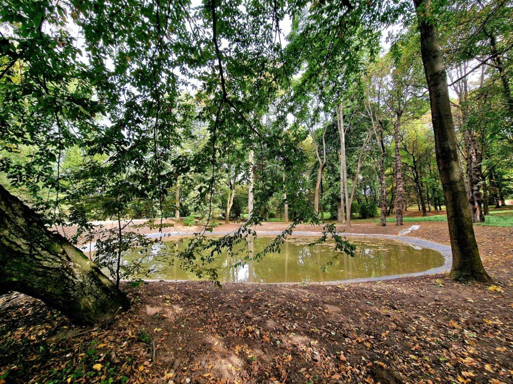 W ramach prac rewaloryzacyjnych prowadzonych w tym roku na terenie Zespołu Pałacowo-Parkowego został zrealizowany projekt budowy stawu rekreacyjnego. Tego typu działania wpisują się w program działań konserwatorskich na terenie naszego zabytkowego parku których celem jest przywrócenie wartości użytkowych i odpowiedniej ekspozycji dziedzictwa kulturowego. Staw istniał w tym miejscu wcześniej o czym możemy przekonać się patrząc na mapę katastralną z 1849 r.