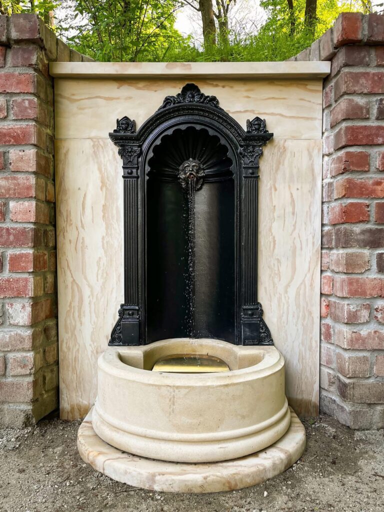 Wodozbiór składa się z żeliwnej niszy oraz misy wykonanej z rekonstruowanego piaskowca, którego kolor idealnie współgra z naturalnym piaskowcem Zbylutów.