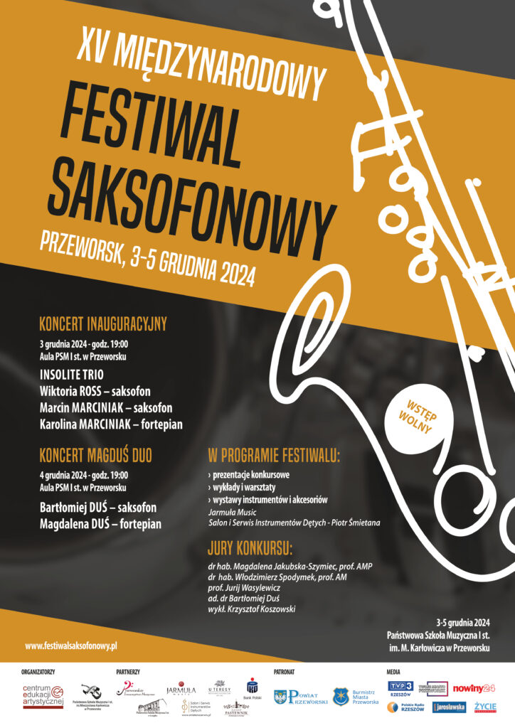Już niebawem – 3 do 5 grudnia odbędzie się XV Międzynarodowy Festiwal Saksofonowy w Przeworsku.