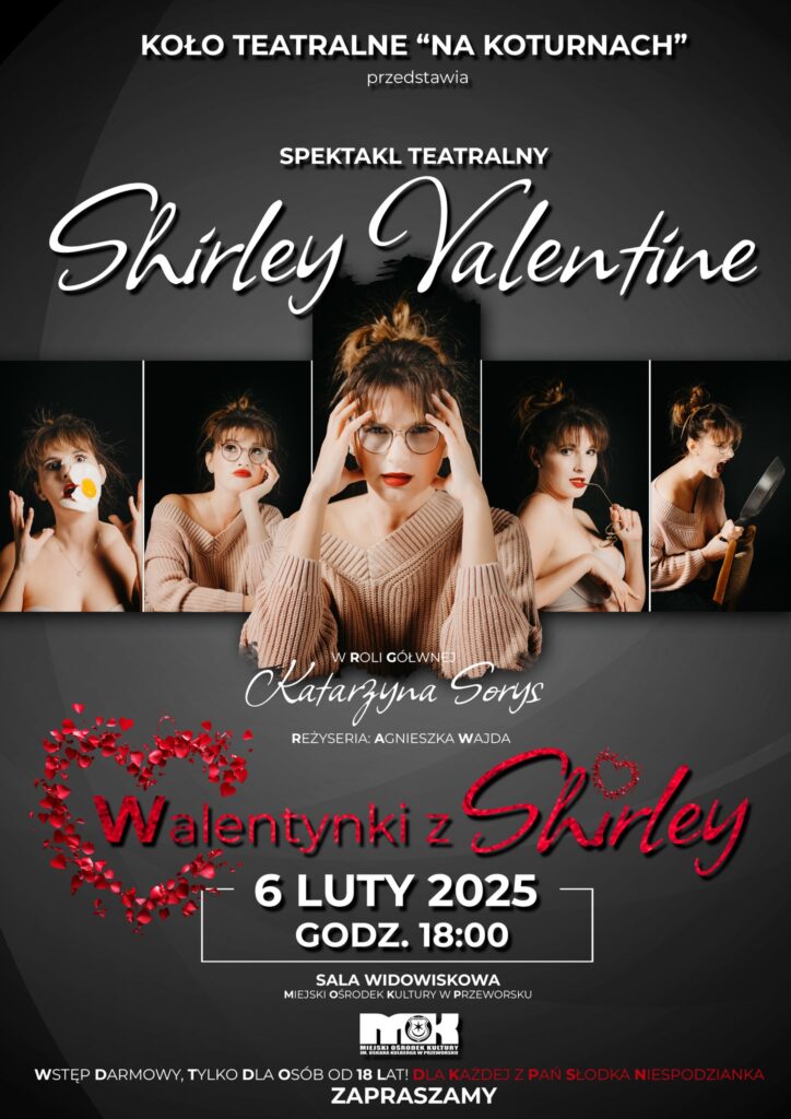 6 lutego 2025 (czwartek) o 18:00 zapraszamy Was na poruszający, pełen humoru i refleksji spektakl „Shirley Valentine”!