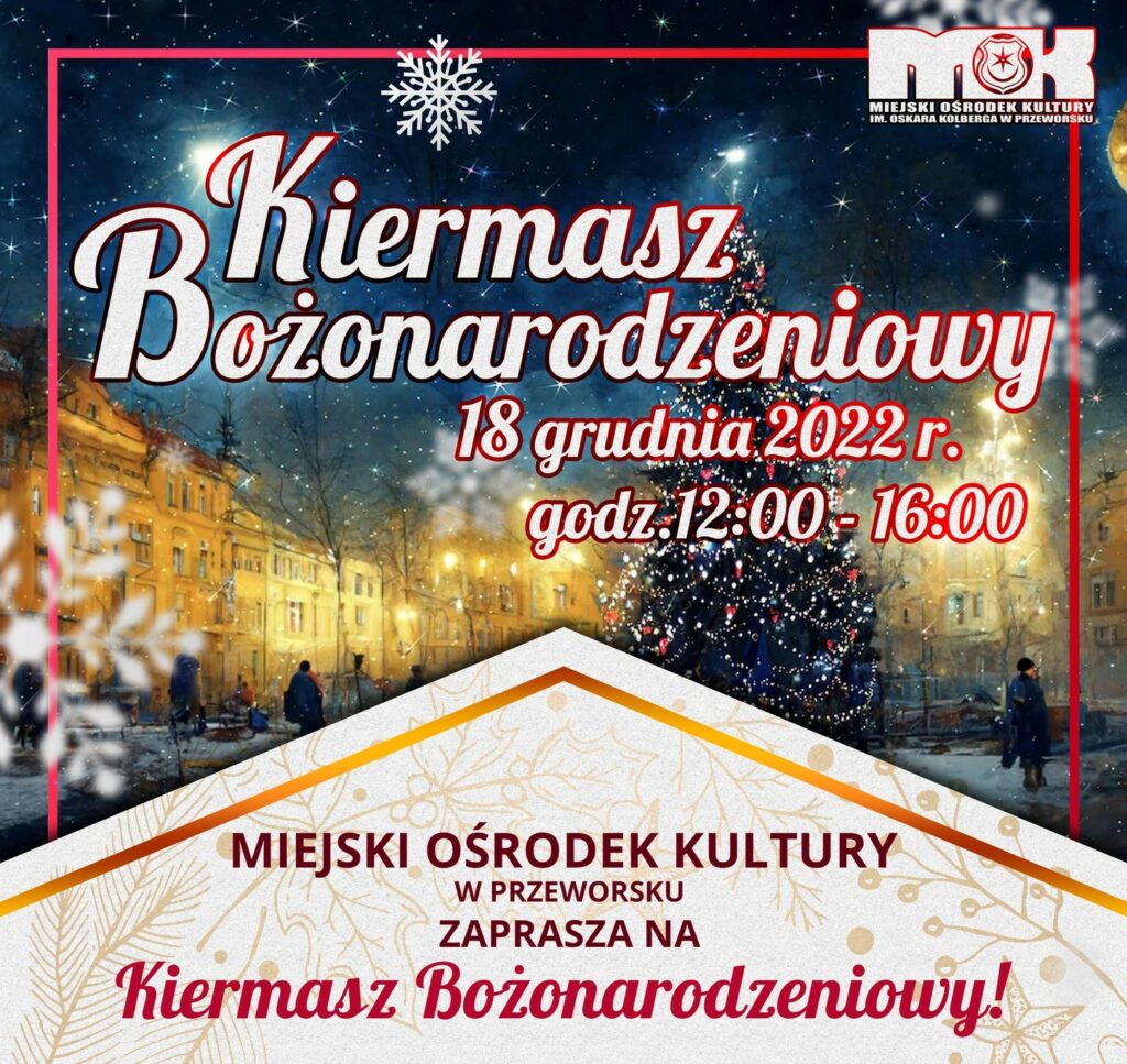 18 grudnia od godz. 12:00 do godz. 16:00 startuje Kiermasz Bożonarodzeniowy w Miejskim Ośrodku Kultury w Przeworsku.