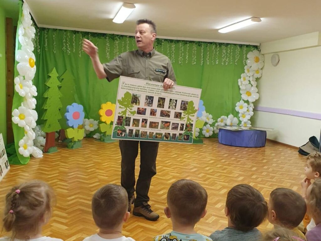 W piątek, 25 kwietnia, Przedszkole Miejskie nr 2 w Przeworsku gościło pana Dariusza – leśnika z Nadleśnictwa Kańczuga. Spotkanie było dla najmłodszych okazją do poznania pracy leśnika oraz tajemnic życia leśnych zwierząt i roślin.