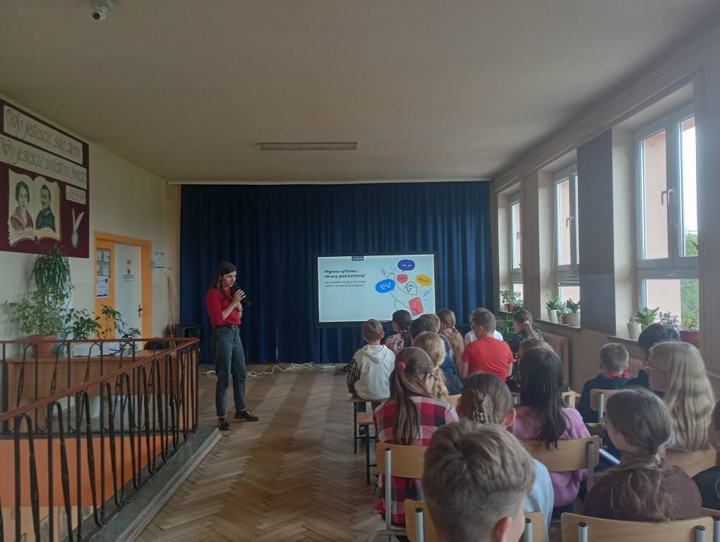 W ramach programu uczniowie klas 4-8 oraz dorośli (nauczyciele i rodzice) wzięli udział w szkoleniach poświęconych higienie cyfrowej i jej znaczeniu.