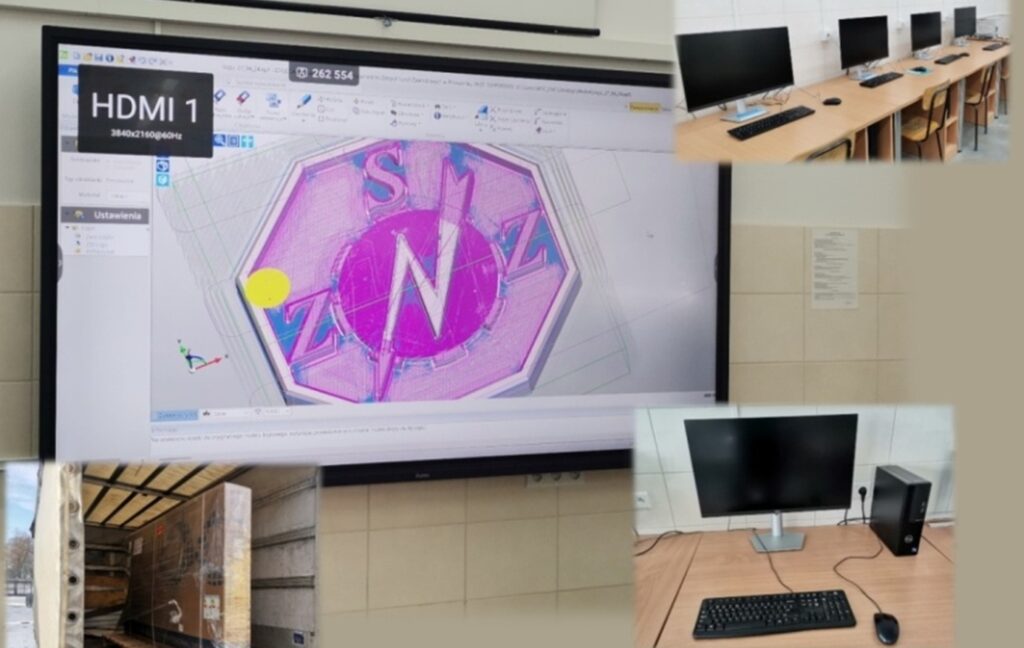 • W ramach projektu zakupiono również monitor interaktywny, profesjonalne zestawy komputerowe oraz specjalistyczne oprogramowanie CAD/CAM, które umożliwia projektowanie, wytwarzanie oraz wykonywanie analiz inżynierskich i zarządzanie dokumentacją.