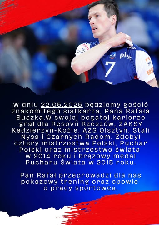 22 maja 2025 roku będziemy mieli okazję gościć tego wybitnego sportowca, który w swojej bogatej karierze reprezentował barwy Resovii Rzeszów, ZAKSY Kędzierzyn-Koźle, AZS Olsztyn, Stali Nysy i Czarnych Radom. Pan Rafał może poszczycić się zdobyciem czterech mistrzostw Polski, Pucharu Polski oraz mistrzostwem świata w 2014 roku i brązowym medalem Pucharu Świata w 2015 roku – pisze na swoim facebookowym profilu szkoła.
