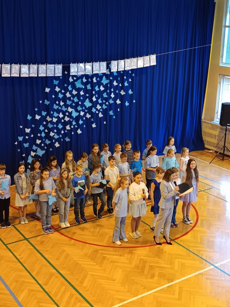 Uczniowie młodszych klas przygotowali wzruszające i pouczające przedstawienie, które w przystępny sposób wyjaśniało, czym jest spektrum autyzmu i jak różnorodne mogą być doświadczenia osób z tą diagnozą. Dzieci z zaangażowaniem wcieliły się w role, prezentując, jak odmienne mogą być sposoby postrzegania świata, komunikowania się i interakcji społecznych u osób z autyzmem. Podkreślono, że inność nie oznacza gorszości, a osoby ze spektrum autyzmu posiadają unikalne talenty i mocne strony.