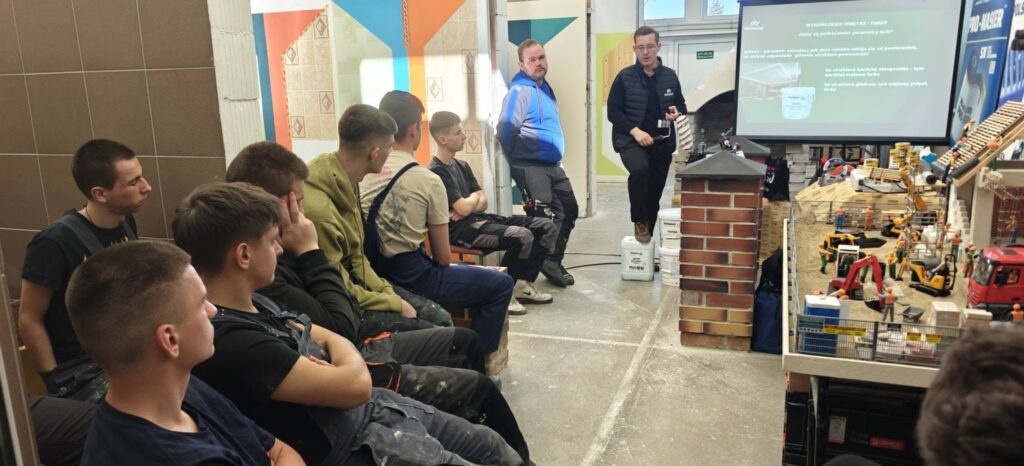 Podczas czwartkowych warsztatów młodzież miała okazję zapoznać się z rozwiązaniami z zakresu chemii budowlanej oraz akcesoriów malarskich. Największą atrakcją i wartością edukacyjną były zajęcia praktyczne. Uczniowie samodzielnie operowali agregatem malarskim, ucząc się precyzyjnego nakładania powłok oraz zasad konserwacji tych zaawansowanych urządzeń.