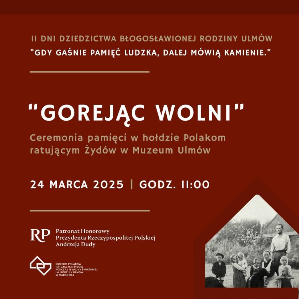 W dniu 24 marca 2025r. na Ścianie Pamięci Muzeum Polaków Ratujących Żydów w Markowej odbędzie się ceremonia odsłonięcia tabliczek z nazwiskami: