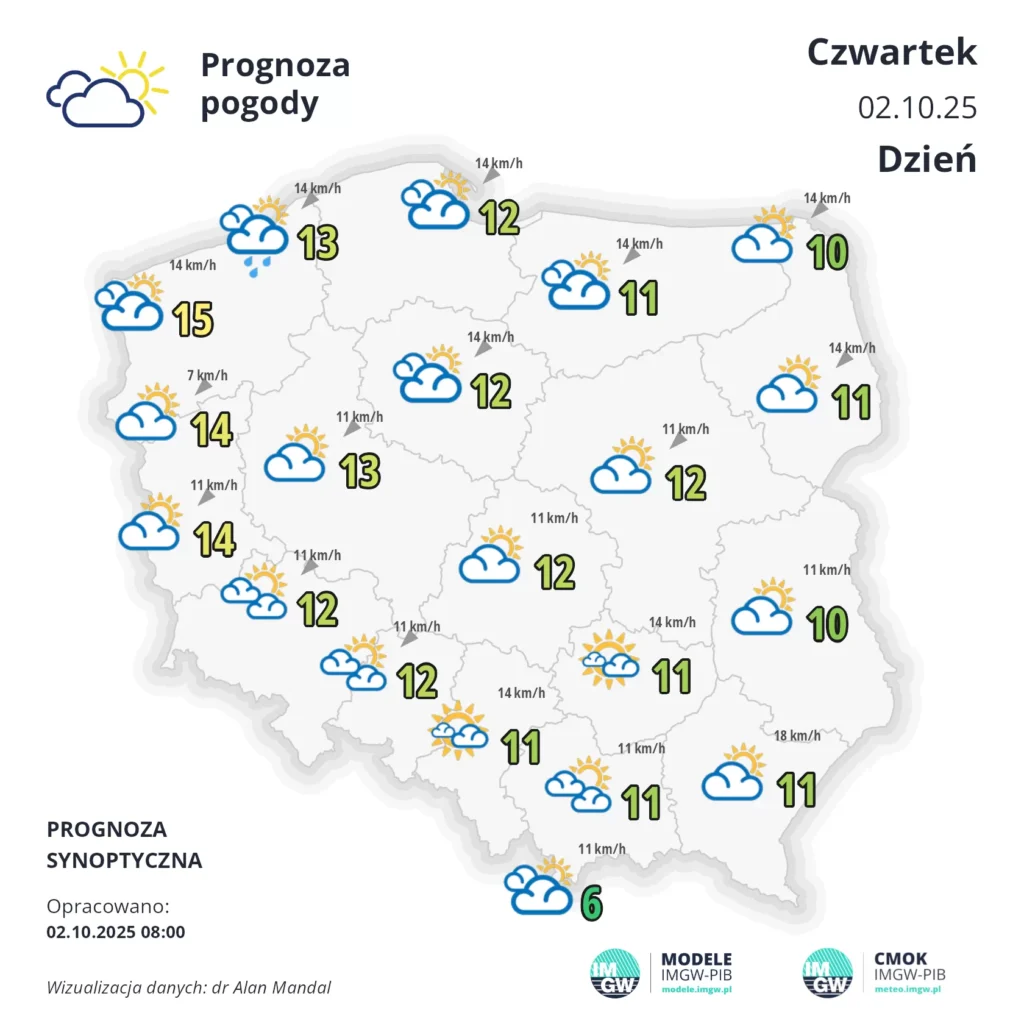 Podkarpacie – Czwartek, 2 października, przyniesie na Podkarpacie zmienną, typowo jesienną aurę. Choć na niebie pojawi się więcej słońca, to wciąż należy być przygotowanym na lokalne opady, a w górach nawet na śnieg. Poranek i noc będą bardzo zimne, z przymrozkami sięgającymi nawet -6 stopni przy gruncie.