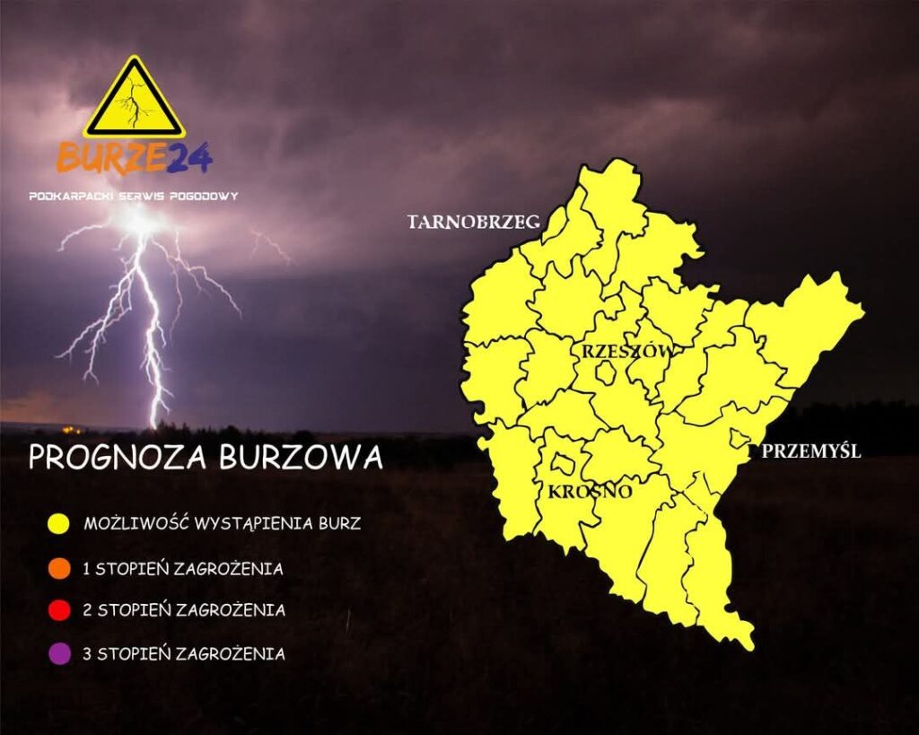 Dziś (niedziela, 4 maja) na terenie całego województwa podkarpackiego istnieje możliwość wystąpienia burz (R). Prosimy o zachowanie ostrożności i śledzenie aktualnych informacji pogodowych!