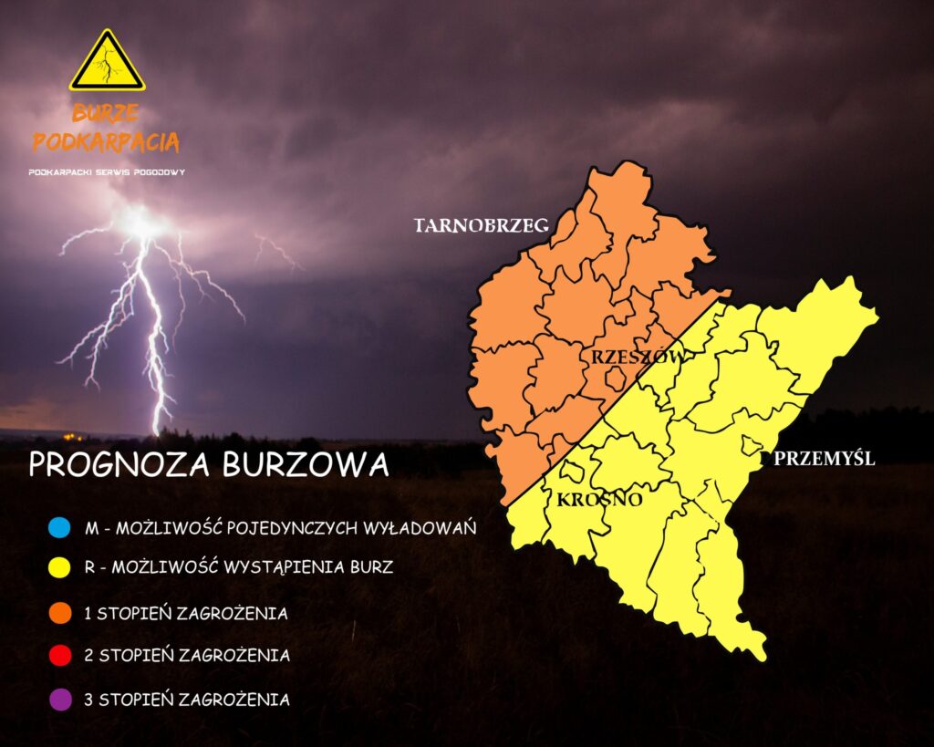 Nad Podkarpaciem ponownie zalega ciepła, niestabilna i bogata w wilgoć masa powietrza. Od zachodu w kierunku regionu przemieszczać się będzie chłodny front atmosferyczny, związany z niżem ulokowanym nad północnymi częściami Oceanu Atlantyckiego. Ta sytuacja, w połączeniu z dogodnymi warunkami do rozwoju komórek burzowych, przyniesie ponowne pojawienie się konwekcji opadowo-burzowej.