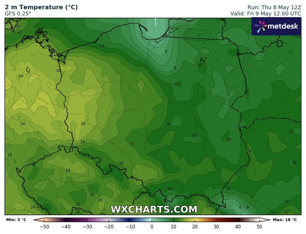 Piątek na Podkarpaciu rozpocznie się podobnie do czwartku – z małym i umiarkowanym zachmurzeniem oraz stosunkowo chłodną jak na maj temperaturą.