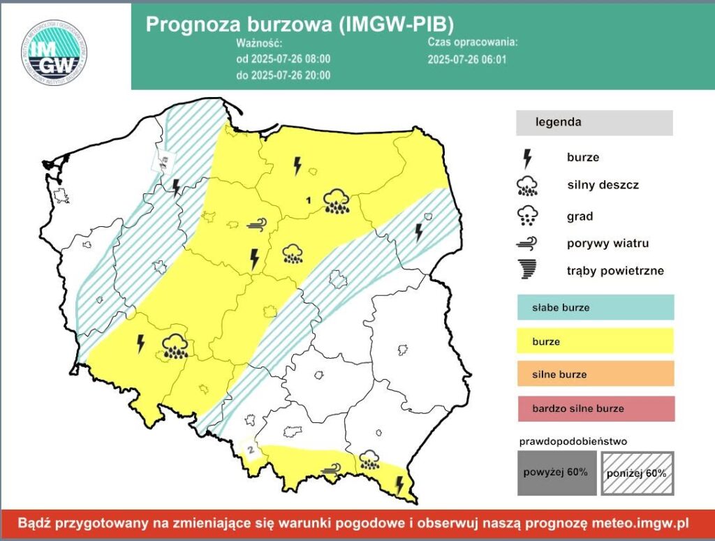 Sobota od samego rana przyniesie punktowe, konwekcyjne opady deszczu. Oznacza to, że w różnych częściach regionu mogą pojawiać się przelotne, ale chwilami intensywne deszcze. Zgodnie z prognozą, wraz z upływem godzin zjawisk tych będzie przybywać.