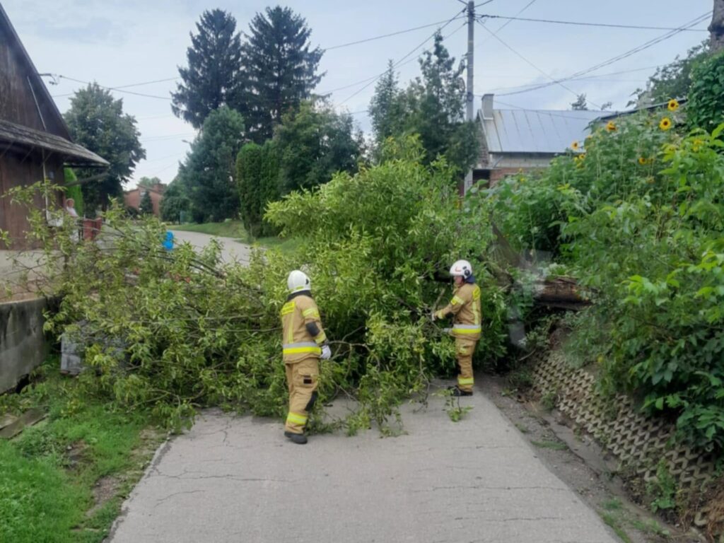 Prawdopodobnie w wyniku silnego wiatru, drzewo przewróciło się, całkowicie tarasując jezdnię. Na miejsce wezwano strażaków, którzy niezwłocznie przystąpili do działania.