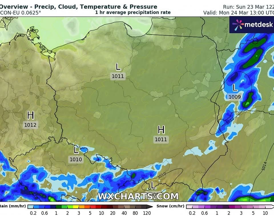 Prognoza obowiązuje od 25 marca godz. 6:00 do 26 marca godz. 6:00.