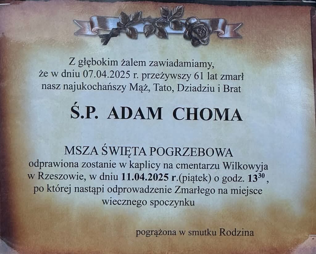 Z ogromnym smutkiem Ochotnicza Straż Pożarna w Gaci informuje o śmierci wieloletniego muzyka sakshornisty tenorowego związanego z orkiestrą naszej jednostki, śp. Adama Chomy.