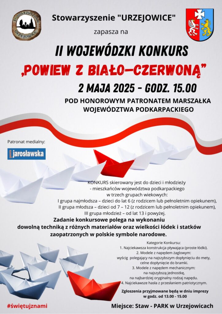 Stowarzyszenie „URZEJOWICE” serdecznie zaprasza dzieci i młodzież z całego województwa podkarpackiego do wzięcia udziału w II Wojewódzkim Konkursie „Powiew z Biało-Czerwoną”!