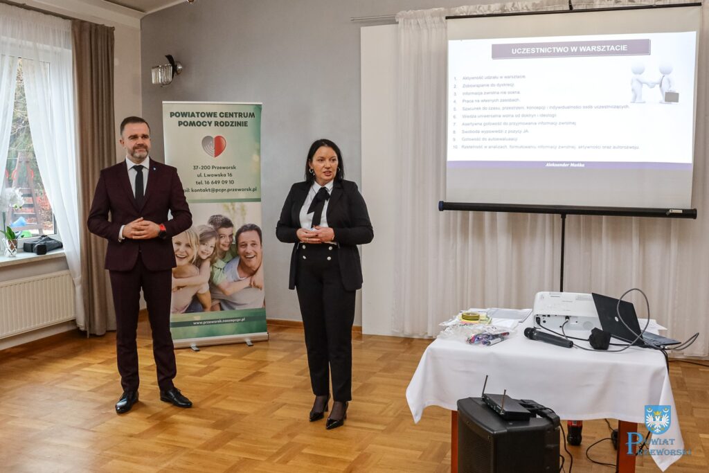 Szkolenie miało na celu podniesienie kompetencji osób, które w swojej codziennej pracy spotykają się z trudnymi sytuacjami rodzinnymi i muszą podejmować decyzje dotyczące bezpieczeństwa najmłodszych. Uczestników powitała dyrektor PCPR Katarzyna Kowal, a w spotkaniu wziął udział również Starosta Przeworski Dariusz Łapa.