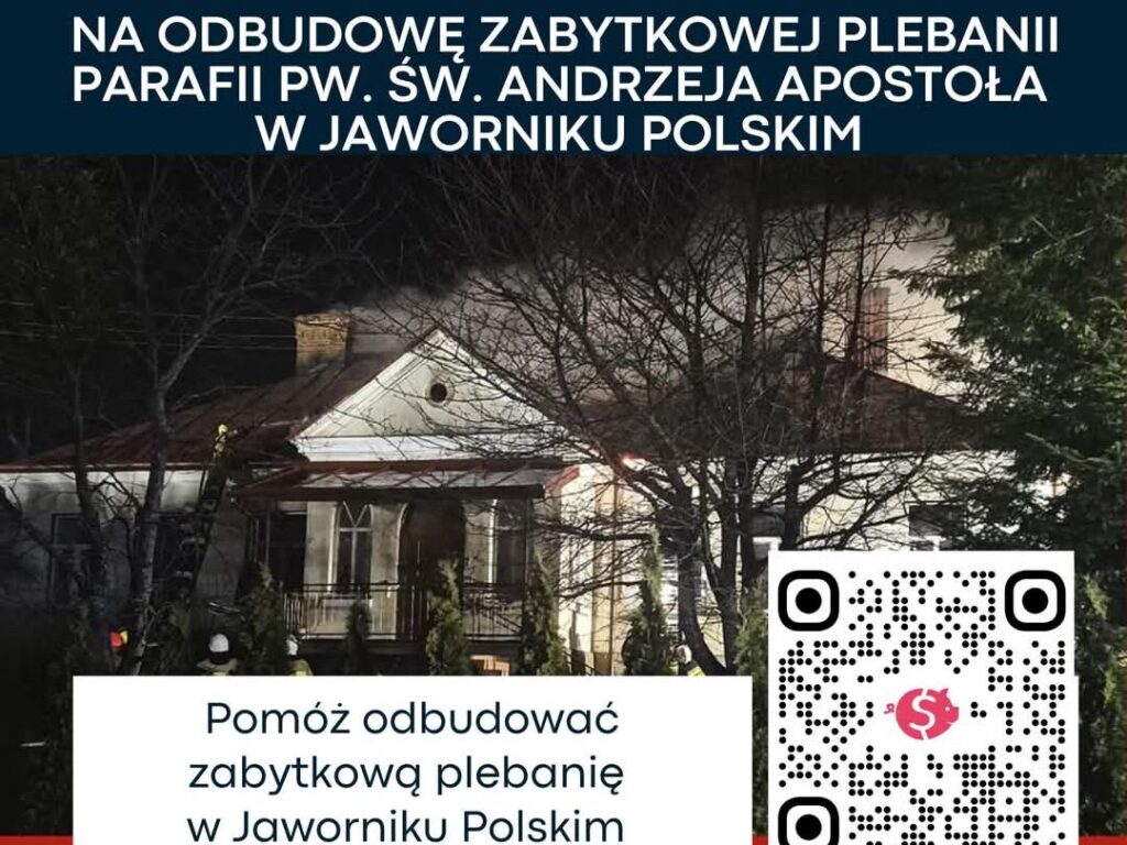 Nie bądźmy obojętni na tragedię, która dotknęła Jawornik Polski. Udostępniajmy informacje o zbiórce, dzielmy się nimi z rodziną i przyjaciółmi. Razem możemy uratować zabytkową plebanię i ocalić nasze wspólne dziedzictwo!