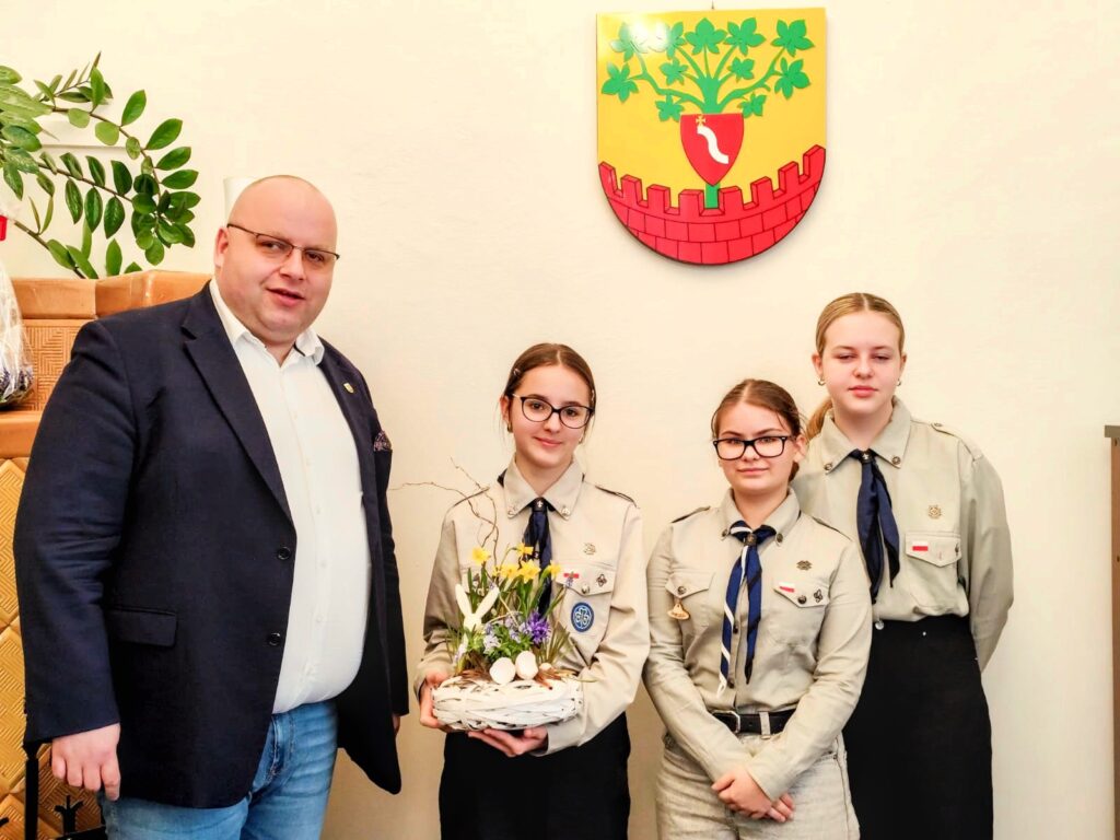 Dziś Urząd Miasta i Gminy Jawornik Polski gościł harcerzy ze Związku Harcerstwa Polskiego w Jaworniku Polskim. Młodzi skauci złożyli Burmistrzowi Łukaszowi Kawaliło serdeczne życzenia z okazji zbliżających się Świąt Wielkanocnych.