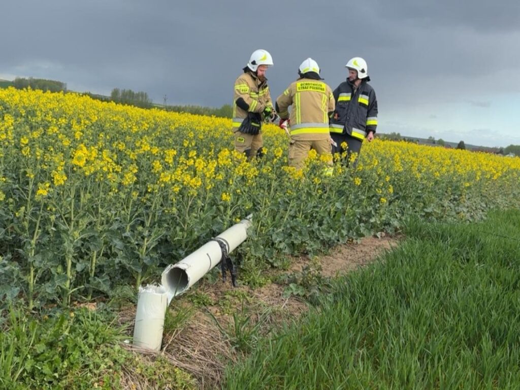 Do zdarzenia doszło w niedzielę, 26 kwietnia 2026 roku. Zgłoszenie o przeszkodzie na drodze wpłynęło do strażaków o godzinie 6:45. Po przybyciu na miejsce zastępy potwierdziły, że uszkodzona infrastruktura telekomunikacyjna uniemożliwia bezpieczny przejazd pojazdów. W działaniach mających na celu usunięcie zagrożenia brały udział dwa zastępy straży pożarnej: