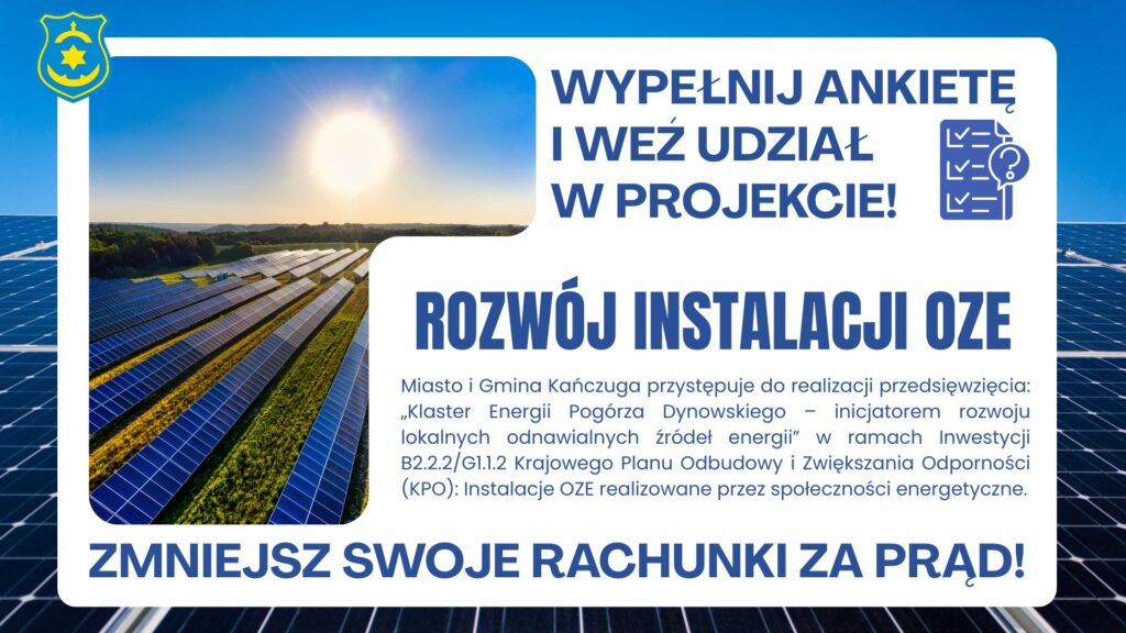 Miasto i Gmina Kańczuga ogłosiły ważną informację dla wszystkich mieszkańców zainteresowanych montażem instalacji fotowoltaicznej z dofinansowaniem. Termin składania dokumentów do projektu „Klaster Energii Pogórza Dynowskiego”, finansowanego z Krajowego Planu Odbudowy (KPO), został przedłużony.