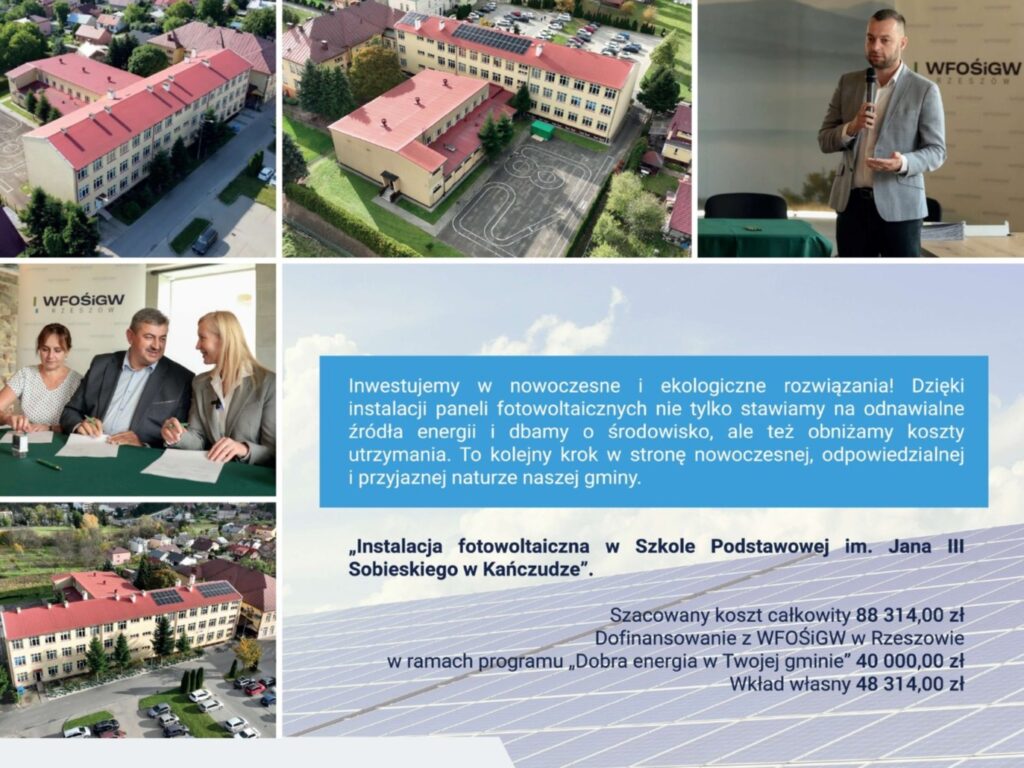 „Inwestujemy w przyszłość – w edukację, środowisko i odpowiedzialne gospodarowanie energią. Razem budujemy nowoczesną gminę Kańczuga.”