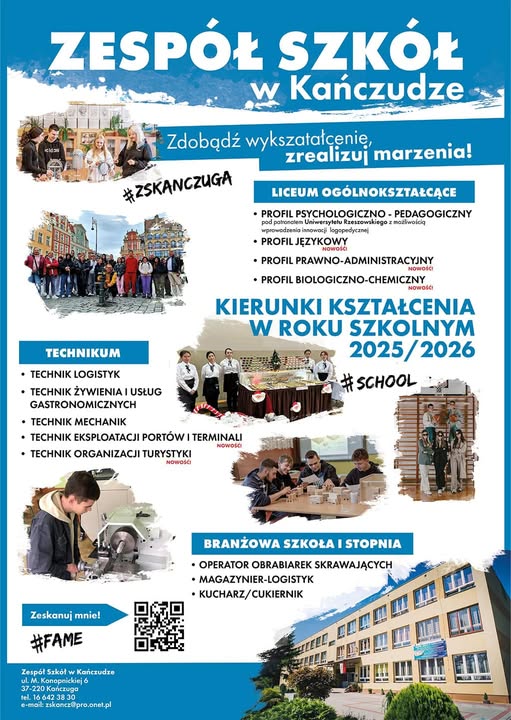 Zespół Szkół w Kańczudze to szkoła z tradycjami, stawiająca na nowoczesne metody nauczania i praktyczne przygotowanie do przyszłego zawodu. Bogata baza dydaktyczna, wykwalifikowana kadra pedagogiczna oraz liczne zajęcia dodatkowe i praktyki zawodowe to tylko niektóre z atutów szkoły.