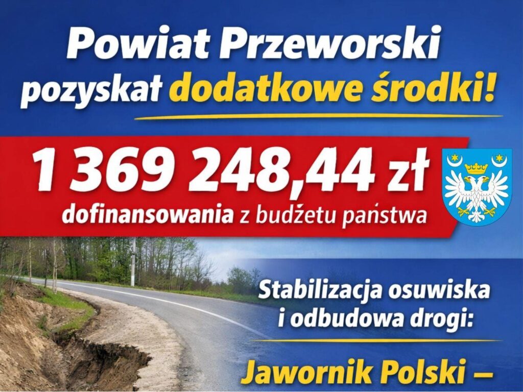 Skala finansowa przedsięwzięcia jest znacząca. Powiat Przeworski otrzymał z rezerwy celowej budżetu państwa kwotę 1 369 248,44 zł. Samorząd powiatowy również zabezpieczył własne środki na ten cel – w budżecie powiatu na 2026 rok zarezerwowano kwotę 800 000 zł. Łączny budżet pozwoli na kompleksowe rozwiązanie problemu osuwiska, który od lat był utrapieniem dla lokalnej społeczności. Zadanie pod oficjalną nazwą „Stabilizacja osuwiska nr ewid. 18-14-042-083420 wraz z odbudową drogi powiatowej nr 1628R Jawornik Polski – Zapady” obejmie odcinek w km 0+255 – 0+342. W ramach prac planowane jest: