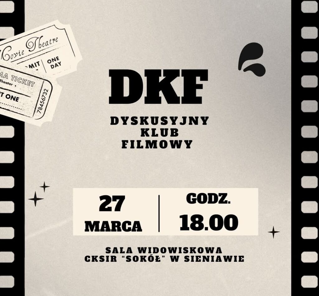 27 marca 2025 roku (czwartek) o godzinie 18:00 w sali widowiskowej CKSiR „Sokół” w Sieniawie zapraszamy na spotkanie Dyskusyjnego Klubu Filmowego. To propozycja dla miłośników ambitnego kina, którzy chcą obejrzeć wartościowy film i wziąć udział w dyskusji na jego temat.