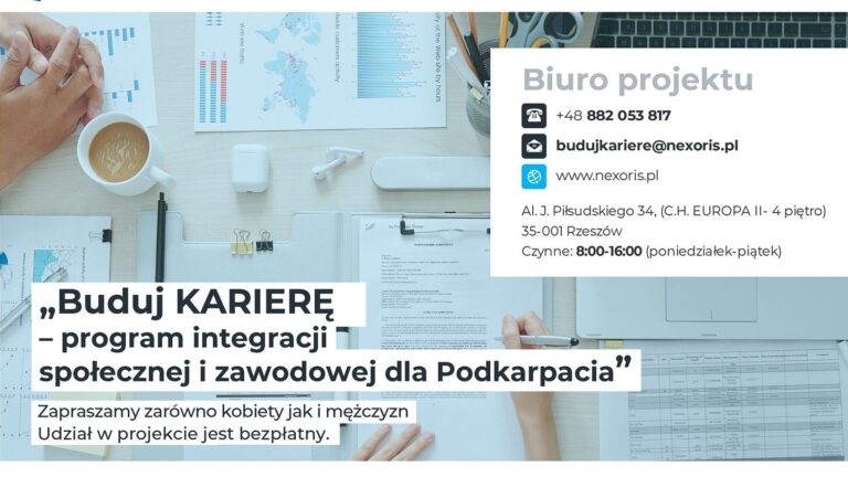 NEXORIS Sp. z o.o., informuje, iż realizuje projekt pt. „Buduj KARIERĘ-program integracji społecznej i zawodowej dla Podkarpacia”. Projekt jest dedykowany osobom posiadającym aktualne orzeczenie o niepełnosprawności, z uwagi na ich szczególnie trudną sytuację związaną z narastającym doświadczeniem dyskryminacji i zagrożenia