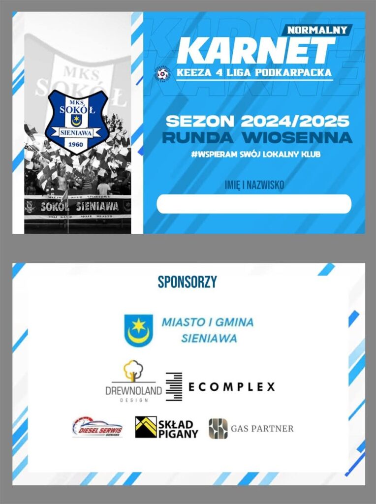 Drużyna „Sokół Sieniawa” przypomina kibicom o karnetach na rundę wiosenną. Kupując karnet wspierasz swój lokalny Klub!
