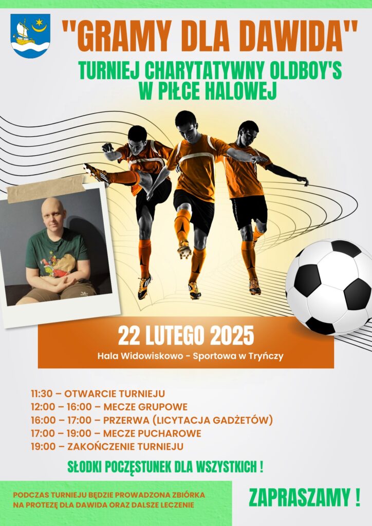 Gmina Tryńcza zaprasza na Turniej Charytatywny „Gramy dla Dawida”, który odbędzie się 22 lutego 2025 roku w Hali Widowiskowo-Sportowej w Tryńczy. Wydarzenie ma na celu zebranie środków na protezę i dalsze leczenie Dawida.