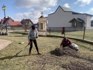 • grabienie i sprzątanie przy kościele, na stadionie oraz na terenie skate parku.