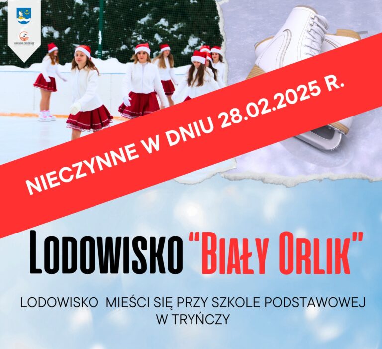 Informujemy, iż w dniu 28.02.2025 r. Lodowisko „Biały Orlik” w Tryńczy będzie nieczynne. Źródło: Gmina Tryńcza
