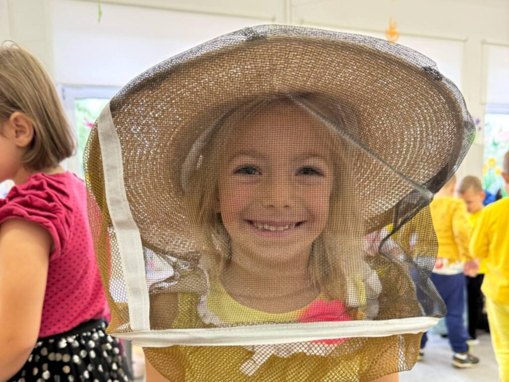 Przedszkolaki miały okazję zobaczyć strój pszczelarza, kapelusz z siatką ochronną i narzędzia pracy, takie jak podkurzacz czy dłuto pszczelarskie. Największą atrakcją było obejrzenie fragmentu prawdziwego ula z woskowymi plastrami i miodem. Dzieci mogły dotknąć ramek i poczuć zapach naturalnego wosku. Na koniec każde dziecko spróbowało pysznego, naturalnego miodu.