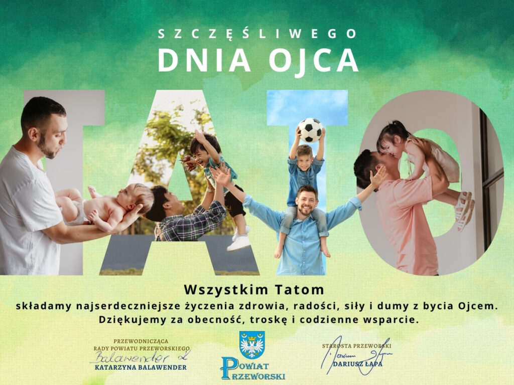 Dziś, 23 czerwca, obchodzimy Dzień Ojca. Z tej okazji Starosta Przeworski Dariusz Łapa oraz Przewodnicząca Rady Powiatu Katarzyna Balawender skierowali do wszystkich ojców z naszego regionu serdeczne życzenia.