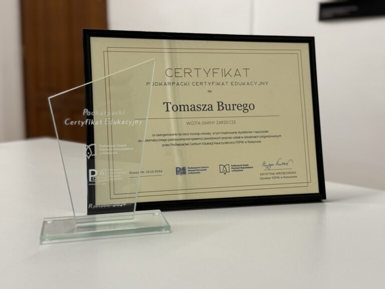 Tomasz Bury wyróżniony Podkarpackim Certyfikatem Edukacyjnym